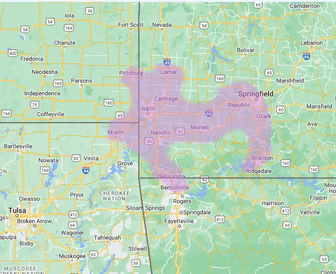 Joplin, Missouri and surrounding areas of Carthage, Webb City, and Neosho.